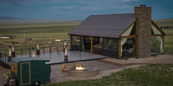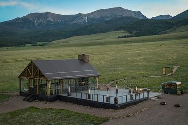 Indoor/Outdoor Glass Pavilion with stunning panoramic views of the mountains. A grand, lavish gas fireplace will keep you warm as you dine with your guests. The ceremony site sits on 85 acres of wildflower meadows under three, majestic fourteen-thousand foot peaks! A wooden boardwalk guides your guests from the pavilion to the ceremony area, culminating in a dramatic double-door entrance that sets the stage for your "I do's." The views don't get any better and you will have a true Colorado experience.